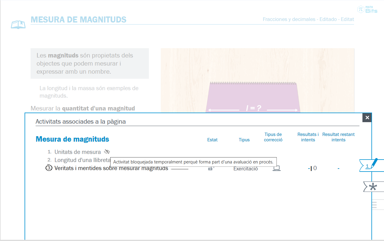 Quan un docent crea una lliçó Avaluem que inclou activitats procedents de les lliçons Expliquem, aquestes activitats es bloquegen automàticament a les seves unitats originals mentre l’avaluació estigui activa. Aquesta mesura garanteix que l’alumnat no pugui consultar-les com a referència durant el desenvolupament de l’examen.